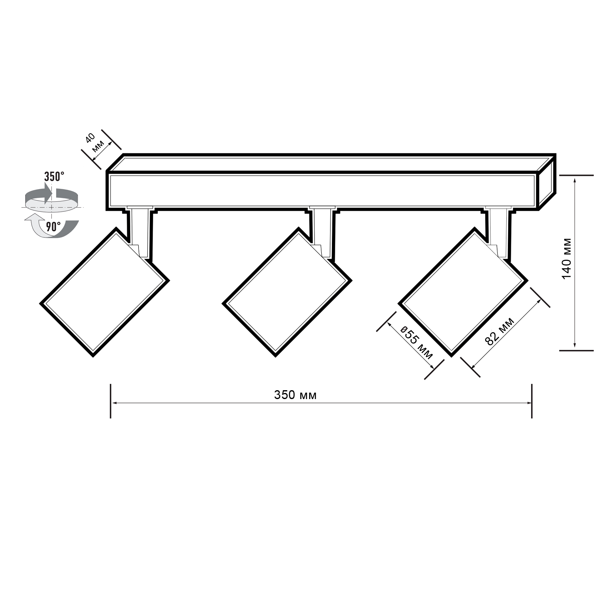 - Размеры, мм Ø55x82x140
