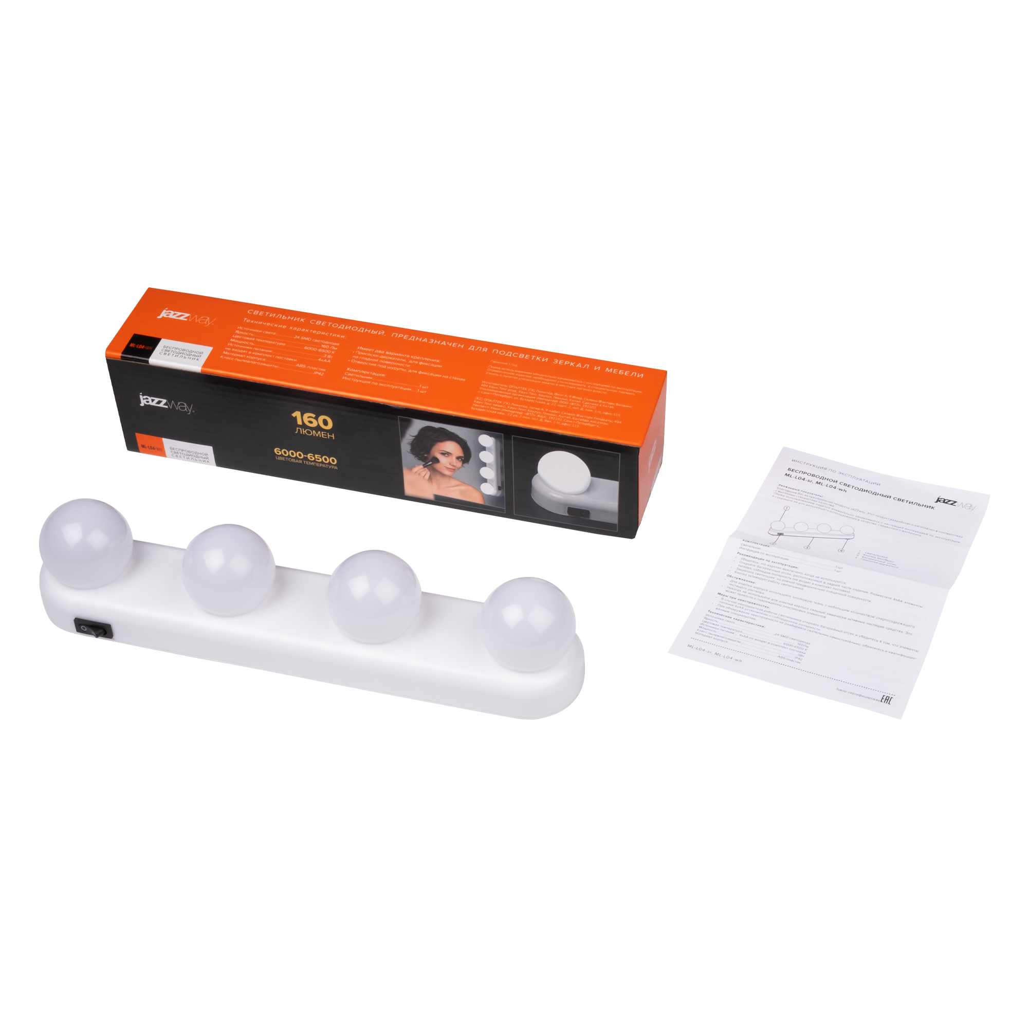 Беспроводной светодиодный светильник ML-L04-wh предназначен для использования дополнительной подсветки зеркал в прихожей, гардеробной, ванной. Передает идеальное освещение, не искажает цвета вашего образа и позволит акцентировать внимание даже на самых важных деталях. Светильник оформлен в современном стиле и будет прекрасным дополнением дизайна. Легкая и быстрая установка при помощи присосок на гладкую глянцевую поверхность (зеркало, стекло). Работает от 4 батареек типа АА (не входят в комплект поставки). Выключатель подсветки расположен на боковом основании.