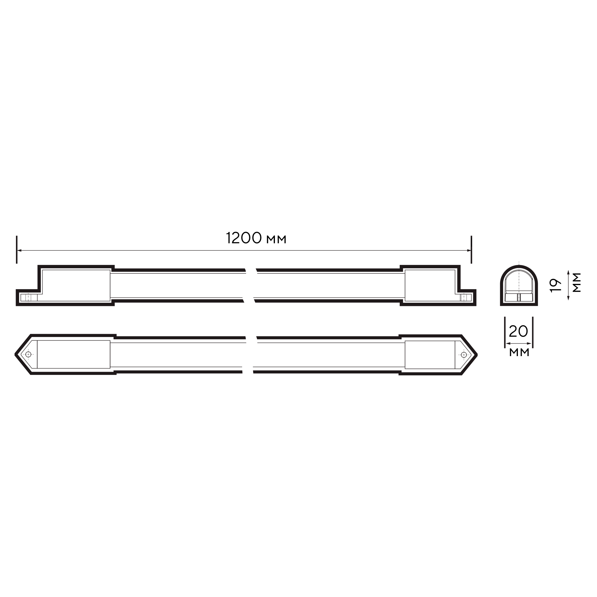 - Размеры, мм 1200x20x19