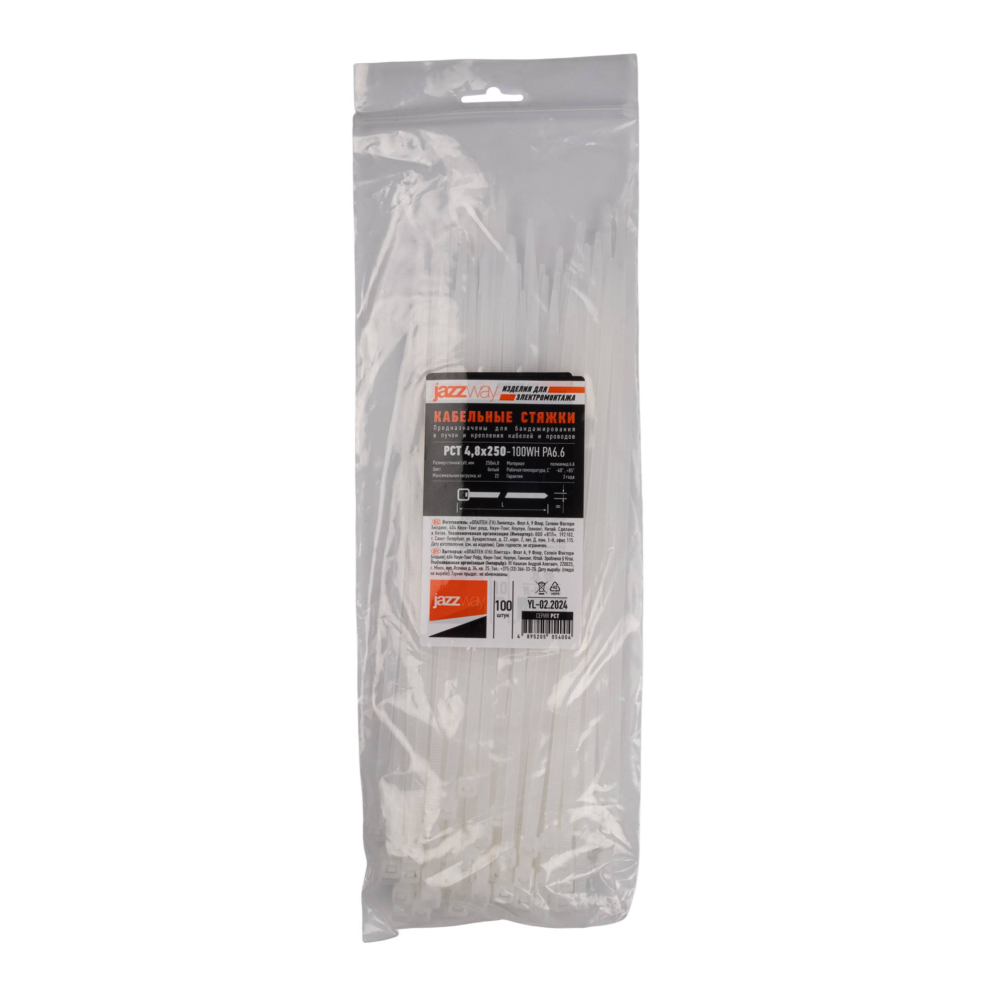 Кабельная стяжка PCT 4,8x250-100WH PA6.6 Jazzway (100 шт/уп)