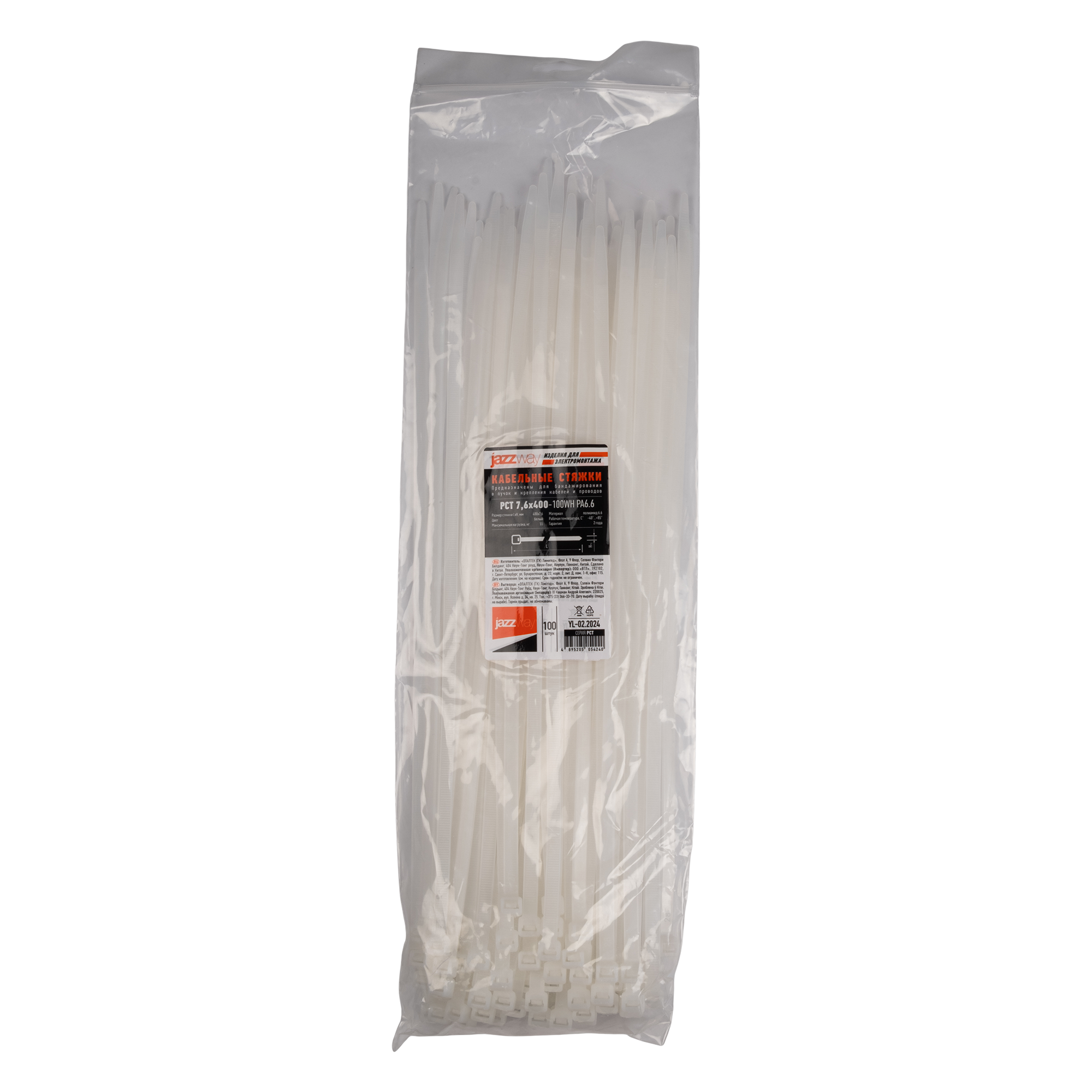 Кабельная стяжка PCT 7,6x400-100WH PA6.6 Jazzway (100 шт/уп)