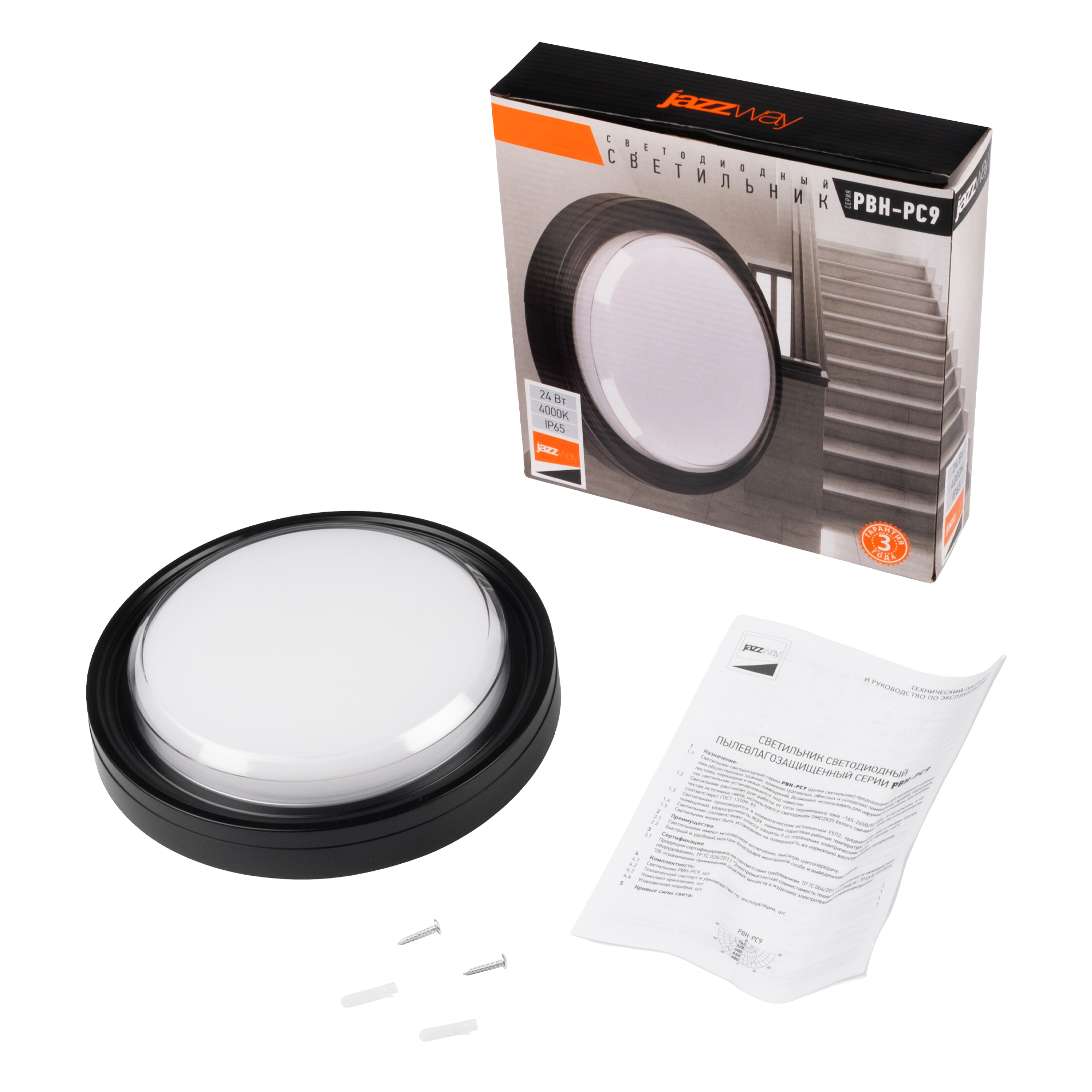 Светильник для ЖКХ PBH-PC9-RA 24W 4000K BLACK IP65