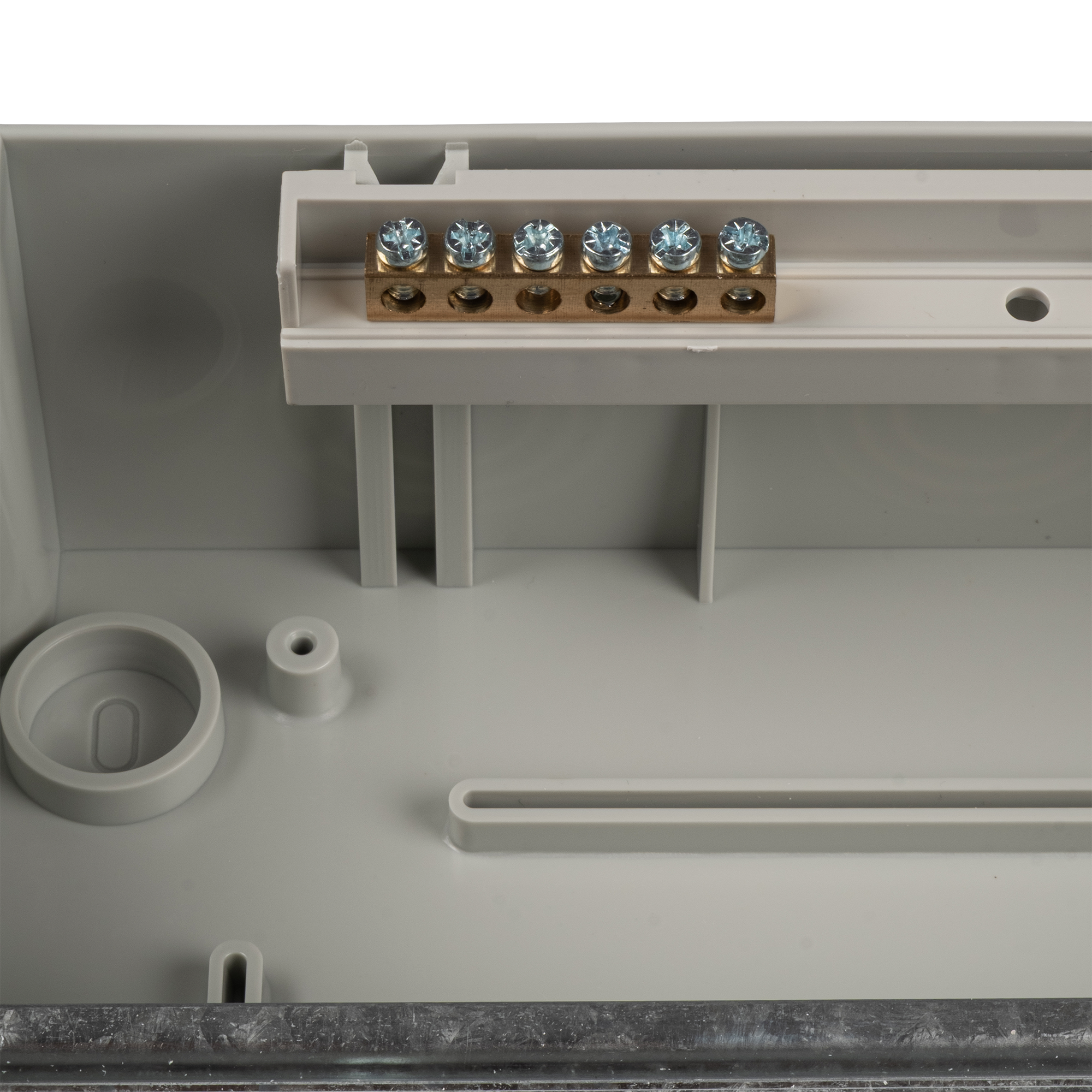 Цвет корпуса: серый Материал корпуса: АБС-пластик Тип крышки : Закрытого типа Шины N/PE: 2 шины /6 отв./