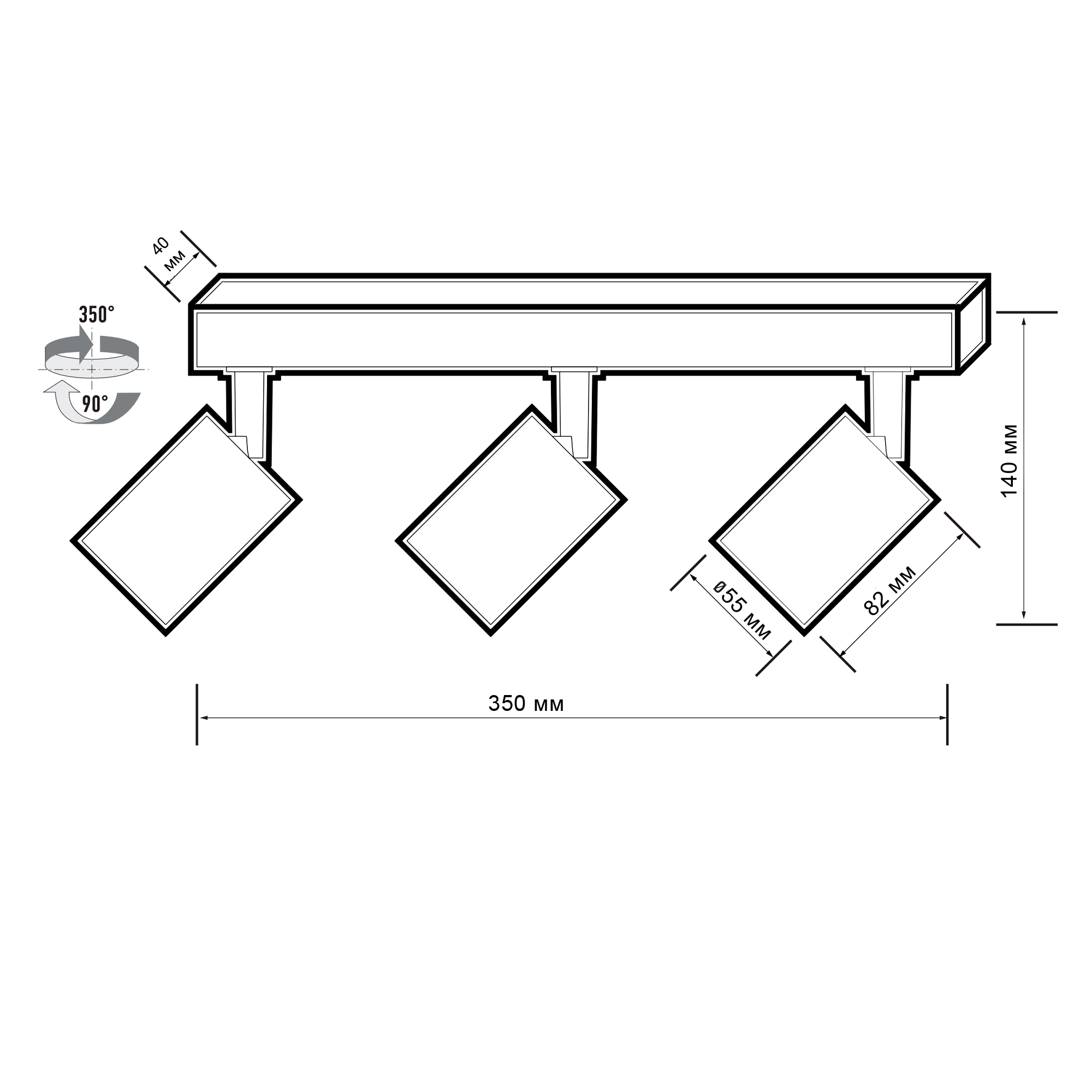 - Размеры, мм Ø55x82x140