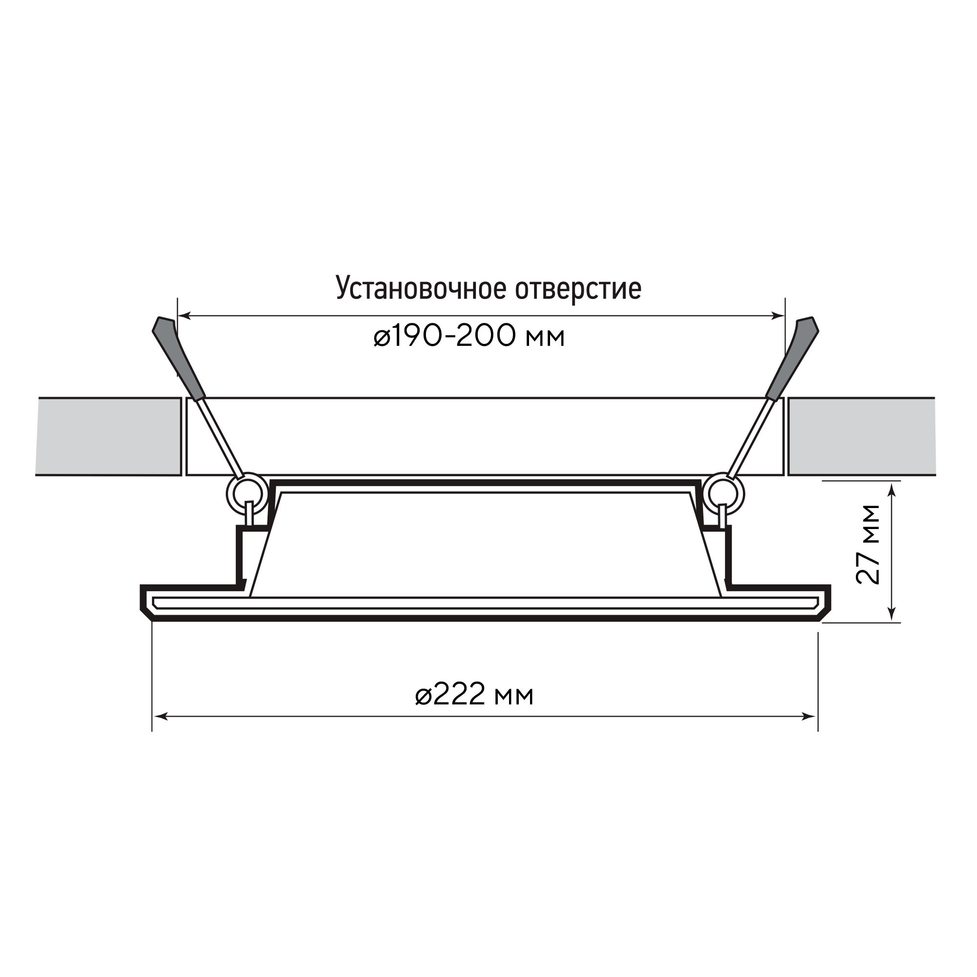 - Установочные размеры, мм Ø190–200