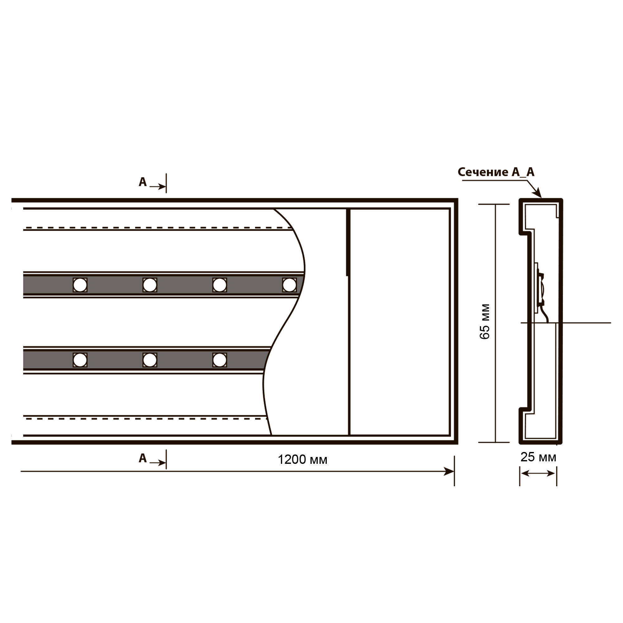 - Размеры, мм 1200х65х25