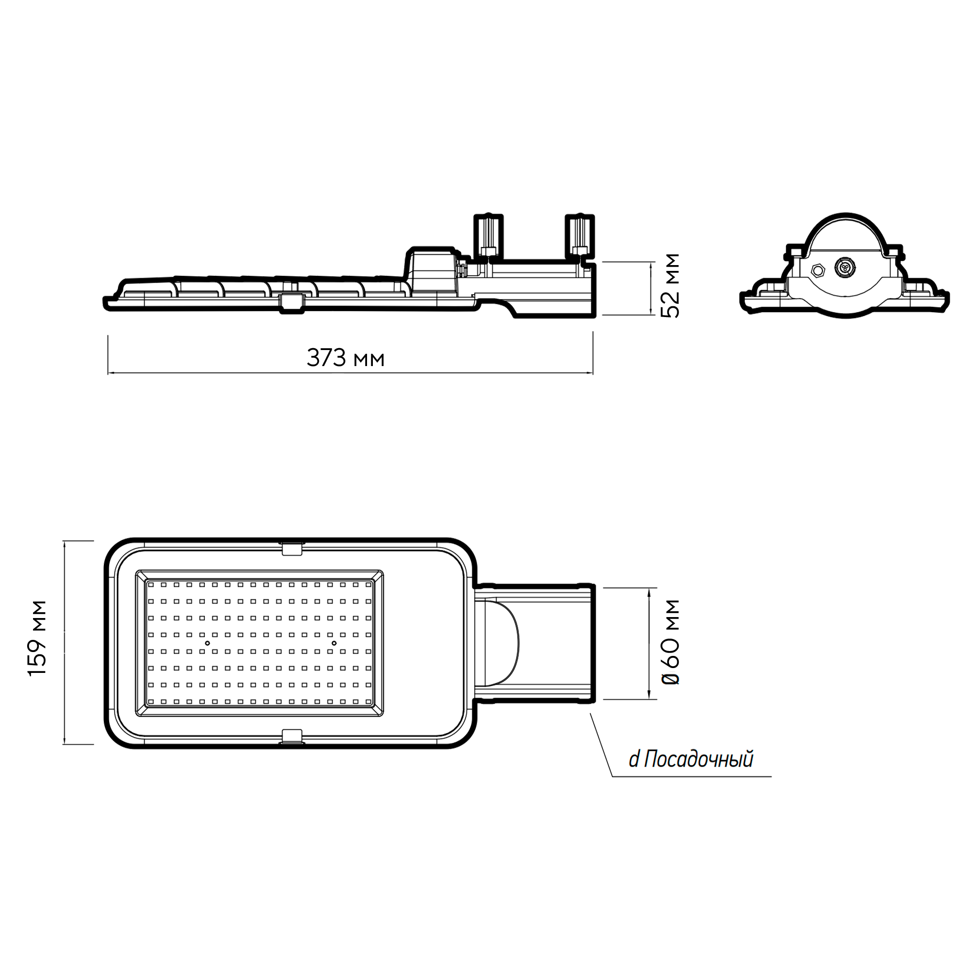 - Размеры, мм 373х159х52