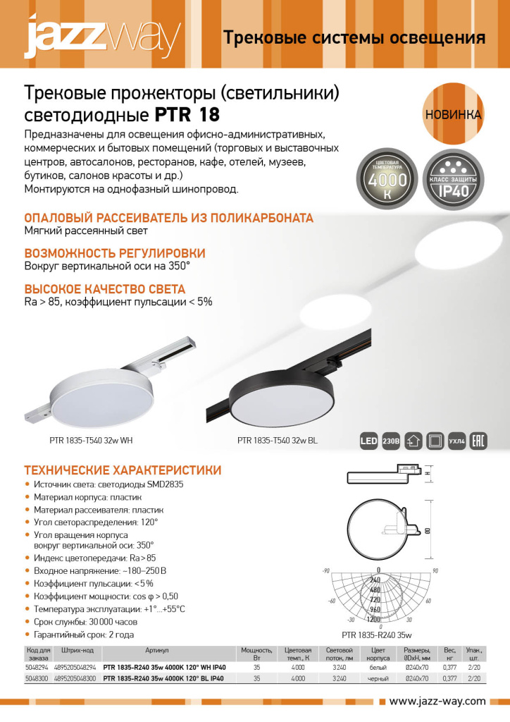 Новости - Трековые светодиодные светильники PTR 1835